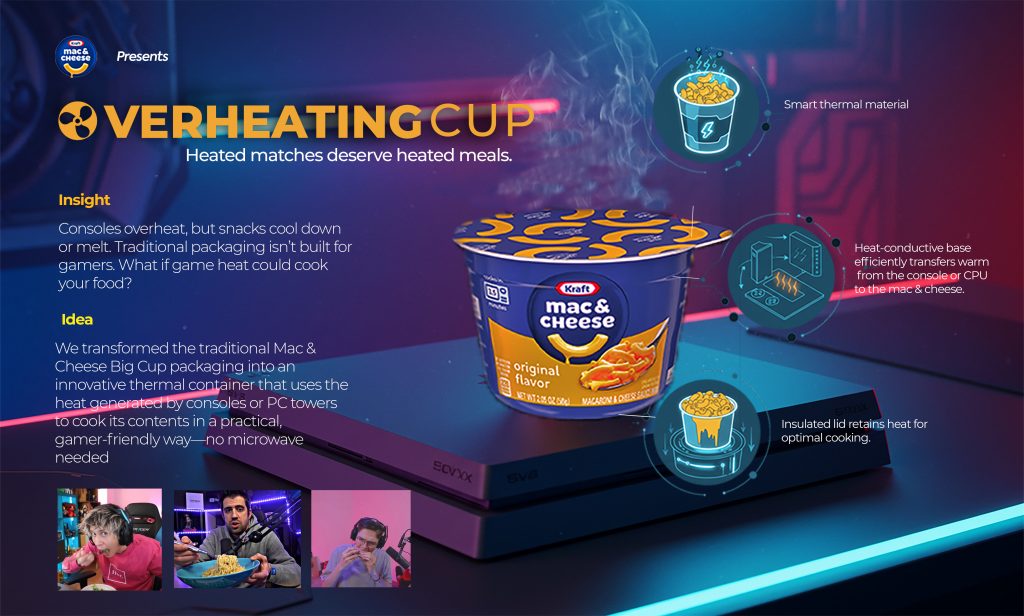 Design a Mac & Cheese package that uses the heat generated by gaming consoles
